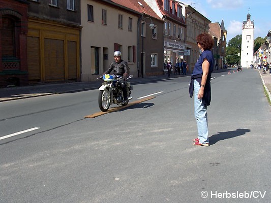 Start der Teilnehmer vor dem Rathaus Zörbig zur Ausfahrt in Richtung Mößlitz. Zuvor musste auf dem Stadtparkring die Sonderprüfungen abgelegt werden.